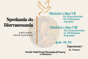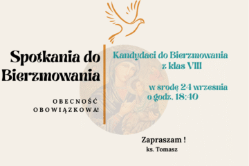 OGŁOSZENIA DUSZPASTERSKIE XXIII NIEDZIELA ZWYKŁA 07. 09. 2025 r. Rozpoczął się nowy rok szkolny i katechetyczny. Katolickich rodziców prosimy o dopilnowanie aby dzieci i młodzież uczestniczyły w katechezie szkolnej. Zapisanie na lekcje religii , dla chrześcijańskich rodziców, wynika z przyrzeczeń złożonych przy zawieraniu sakramentu małżeństwa i zobowiązań wynikających z sakramentu chrztu św. Przypominamy też, że raz zapisane dziecko na religie, Czytaj dalej…