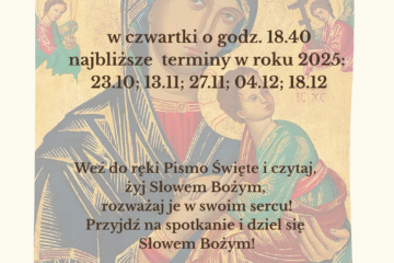 PLAN MODLITWY WYPOMINKOWEJ LISTOPAD AD. 2025 G. 17.15 3 LISTOPADA (PONIEDZIAŁEK) Gdańska, Pod Lasem, Baczyńskiego, Matejki, Karkonoska, Dąbka 4 LISTOPADA (WTOREK) Rajska, Daszyńskiego, Wąska, Robotnicza, Pomorska, Obr. Westerplatte 5 LISTOPADA (ŚRODA) Zgorzelecka, Grunwaldzka, Warszawska, Witosa, Sokola 6 LISTOPADA (CZWARTEK) K. Paryskiej, Karpecka, Meissnera, Łokietka, Czytaj dalej…